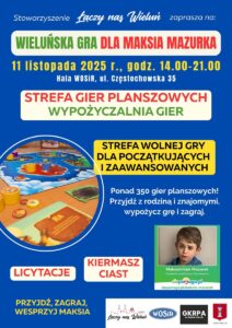 11 listopada 2025 roku Stowarzyszenie Łączy nas Wieluń zaprasza wszystkich mieszkańców miasta i okolic na wyjątkowe wydarzenie charytatywne – Wieluńską Grę dla Maksia Mazurka. To niezwykła okazja, aby połączyć pasję do gier, sportową rywalizację i wielkie serce w jednym wspólnym celu – ratowaniu życia małego Maksia.
