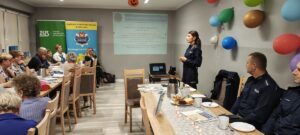 Funkcjonariusze przedstawili stan bezpieczeństwa na drogach powiatu wieluńskiego. Podczas dyskusji zwrócono szczególną uwagę na bezpieczeństwo niechronionych uczestników ruchu drogowego, takich jak piesi i rowerzyści. W ramach tej części omówiono kluczową rolę, jaką odgrywają elementy odblaskowe w poprawie widoczności i ochronie pieszych, zwłaszcza w warunkach ograniczonej widoczności, np. po zmroku czy w trudnych warunkach pogodowych.