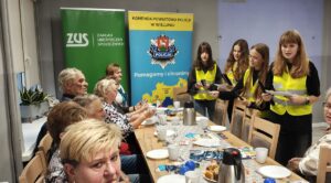 Dla wzmocnienia przekazu uczniowie ze Szkoły Podstawowej numer 4 w Wieluniu wręczyli seniorom elementy odblaskowe oraz przygotowane ulotki dotyczące kwestii związanych z bezpieczeństwem na drogach. Przygotowali również wystąpienie, w którym podkreślali, jak ważne jest przestrzeganie przepisów ruchu drogowego, dbanie o widoczność na drodze zwracając szczególną uwagę na bezpieczeństwo pieszych.