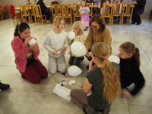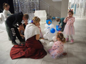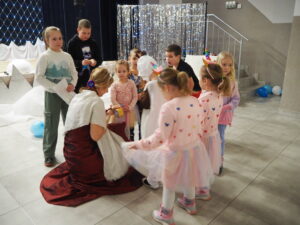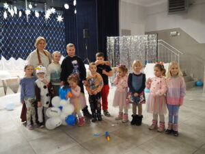 Mroźna aura rzeczywiście pokazała, że nie jest łatwo w mroźnej krainie, dlatego wszystkie  zimowe zabawy odbyły się  w  zaczarowanym  na czas spotkania pomieszczeniu wewnątrz budynku.