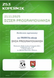21.11 w Zespole Szkół nr 3 im. M. Kopernika w Wieluniu odbył się Dzień Programowania. Był to dzień pełen inspiracji, nowoczesnych technologii i kreatywnych pomysłów!