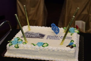 Przyszedł czas na wystąpienia gości. Wszyscy, którzy przybyli na tę niezwykłą uroczystość i chcieli się podzielić refleksją i wspomnieniami, przynieśli ze sobą wiele ciepłych słów dla Jubilatki i Jej pracowników. Szczególne słowa wdzięczności, słowa motywujące do pracy, padły ze strony władz powiatu i Gminy Wieluń. Obecni zapewne zapamiętają słowa pana burmistrza Pawła Okrasy: Świat bardzo przyspieszył, ale mimo pędu książka w swojej klasycznej formie nadal pozostała (…).
