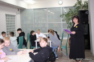 W spotkaniu uczestniczyła klasa 5B ze Szkoły Podstawowej nr 5 z Oddziałami Integracyjnymi im. Powstańców Śląskich w Wieluniu. Uczniowie wysłuchali opowiadania „Prezent” autorstwa Grzegorza Uzdańskiego, które stało się punktem wyjścia do rozmowy o ważnych problemach współczesnych młodych ludzi.