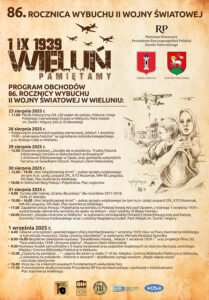 1 września godzina 4.40, główna uroczystość w Wieluniu odbędzie się na pl. Kazimierza Wielkiego. Uczestnicy usłyszą etiudę muzyczną „Twoja czwarta czterdzieści” w wykonaniu Michała Muskata-Zgondka. W godz. 8:00-16:00 w Muzeum Ziemi Wieluńskiej będzie miało miejsce bezpłatne zwiedzanie wystawy „Świadkowie mówią… Wieluń 1 września 1939 r.” oraz projekcje filmu 3D pt. „Fara wieluńska 1939. Utracone piękno”. Trwający 20 minut film powstał w ramach projektu o tej samej nazwie, realizowanego przy wsparciu finansowym z Krajowego Planu Odbudowy.