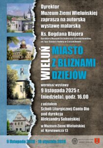 9 listopada godz. 16.00 – Wernisaż autorskiej wystawy malarskiej ks. Bogdana Blajera „Wieluń. Miasto z bliznami dziejów”. Wydarzeniu towarzyszył będzie koncert Scholi Liturgicznej Canto Dio pod dyrekcją Aleksandry Sobańskiej. Bogdan Blajer, Dyrektor Muzeum Archidiecezji Częstochowskiej im. bpa Teodora Kubiny w Częstochowie, oddaje hołd ojczystej ziemi wieluńskiej utrwalając w swoim malarstwie świadectwo bieżącego wyglądu miasta Wielunia w drugiej dekadzie XXI wieku – jego zabytków architektonicznychoraz historycznego centrum.