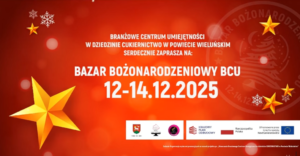 Już w najbliższy piątek, 12 grudnia 2025 o godz. 10.00 serce Branżowego Centrum Umiejętności w Wieluniu zabije w świątecznym rytmie. Tego dnia przy ul. Wojska Polskiego 17 rozpocznie się wyjątkowy Bazar Bożonarodzeniowy, który będzie można odwiedzać do niedzieli 14.12.2025 r. To doskonała okazja, aby znaleźć unikalne, ręcznie robione prezenty, produkty regionalne, posmakować wyrobów cukierniczych Branżowego Centrum Umiejętności oraz warsztatów gastronomicznych i poczuć atmosferę nadchodzących świąt.