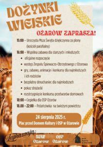 Miesiąc sierpień to czas pielgrzymek, dożynek. Miesiąc wrzesień to czas królowania ziemniaka, chrzanu. Na dożynki zaprasza już 24 sierpnia Sołectwo Ożarów, na Święto Pieczonego Ziemniaka 7 września Zespół Głosy Rannej Rosy oraz Stowarzyszenie Aktywni Razem w Czarnożyłach . Wrzesień to także wspomnienie początku II wojny światowe, w tym roku 86. rocznicy jej wybuchu, początek nowego roku szkolnego, dlatego 3 września Szkoła im. 72 Pułku Piechoty „Radom” w Konopnicy zaprasza na święto patrona Szkoły. Sierpień zakończy koncert „Muzyka Mistrzów w Wieluniu” w wykonaniu Wrocławskiej Orkiestry Wszechmuzycznej w dniu 31 sierpnia. Szczegóły wydarzeń na plakatach!