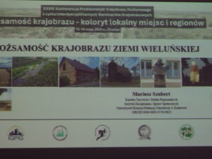 Rozpoczynając temat tożsamości krajobrazu kulturowego ziemi wieluńskiej, profesor przybliżył definicje obrazu kulturowego pani profesor Marii Dobrowolskiej (1895 – 1984) i jej kontynuatorki Mygi Piątek Urszuli.