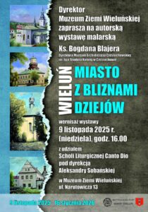 9 listopada 2025 roku w Muzeum Ziemi Wieluńskiej odbył się wernisaż wystawy malarskiej ks. Bogdana Blajera, kapłana Archidiecezji Częstochowskiej, Dyrektora Muzeum Archidiecezji Częstochowskiej, wykładowcy historii sztuki w Wyższym Seminarium Duchownym w Częstochowie, konserwatora sztuki, poety, artysty malarza. Wernisaż zgromadził wielu sympatyków twórczości ks. Bogdana Blajera. Przybyli goście z Gaszyna, Kępna, Wielunia. Obecni byli kapłani: ks. …