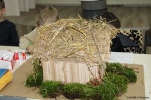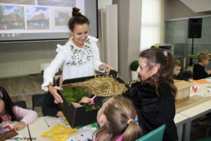Beneficjentami warsztatów byli uczniowie klasy 1a, ze Szkoły Podstawowej nr 5 z Oddziałami Integracyjnymi w Wieluniu, a wśród nich uczestnicy neuroatypowi. Podczas warsztatów, dzieci stworzyły makietę chaty lipnickiej. Odwołując się do fragmentów dzieła „Chłopi”, które opisują jej wygląd zewnętrzny, otoczenie oraz pomieszczenia, za pomocą artykułów plastycznych i materiałów o rożnych teksturach został odtworzony dom „kmiecy” Boryny, a także powstały wycinanki, które zdobiły jego ściany. Warsztaty poprzedził wstęp i prezentacja multimedialna na temat lipnickich warunków życia oraz krajobrazów. Zajęcia prowadziła Patrycja Rybczyńska .