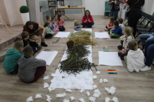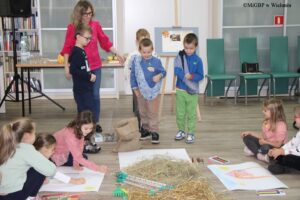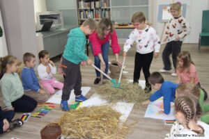 16.10.2025 r. w Miejskiej i Gminnej Bibliotece Publicznej w Wieluniu odbyło się pierwsze wydarzenie w ramach projektu „Październik z Reymontem” zatytułowane „Wiejska chata zmysłami przedszkolaka czyli „Chłopi” Reymonta w odbiorze dzieci”.