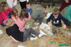 Podczas zajęć, dzieciom została przybliżona sylwetka Władysława Stanisława Reymonta oraz obraz życia z XIX wieku w Lipcach. W trakcie czterech pór roku, odpowiadającym czterem tomom powieści „Chłopi”, dzieci poznawały charakter pracy na dawnej polskiej wsi. Zajęcia praktyczne rozpoczęły się od narysowania drewnianych chat, a następnie uczestnicy przystąpili do prac polowych. Wiosną dzieci siały ziarno, latem zgrabiały i kopiły siano oraz robiły mini snopki ze słomy. Po tych zadaniach nastąpił poczęstunek – chleb z miodem. W trakcie jesiennych prac gospodarskich dzieci zbierały ziemniaki, zagrabiały łęty oraz „ogacały” chałupy patykami. Wszystkie te czynności zakończyła degustacja pieczonych ziemniaków jak z ogniska oraz jabłek. Podczas zajęć o życiu na wsi zimą, dzieci dowiedziały się, że to czas odpoczynku, zabawy i przygotowań do świąt.
