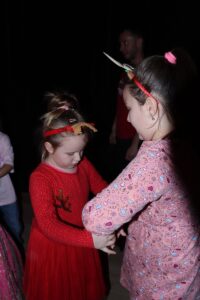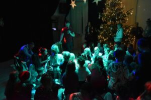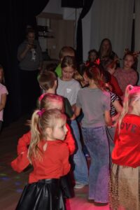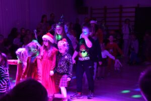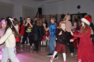 Dzieci, niczym bajkowi bohaterowie, pojawiały się w zachwycających strojach a wśród nich można było zobaczyć wytworne księżniczki, liczne elfy w czerwonych czapkach, dzielnych rycerzy, barwne czarodziejki oraz inne fantastyczne postacie. W powietrzu unosiła się atmosfera beztroski i oczekiwania, którą potęgował wir tańców, śmiechu i migoczących świateł.